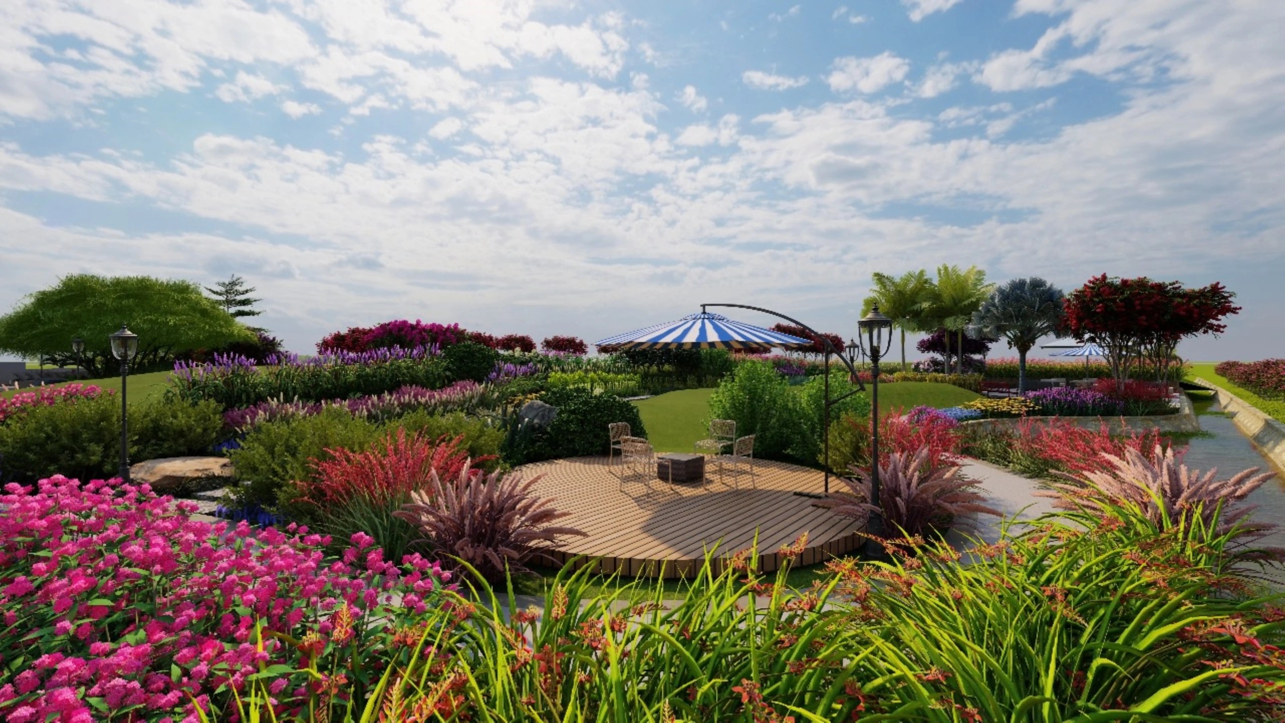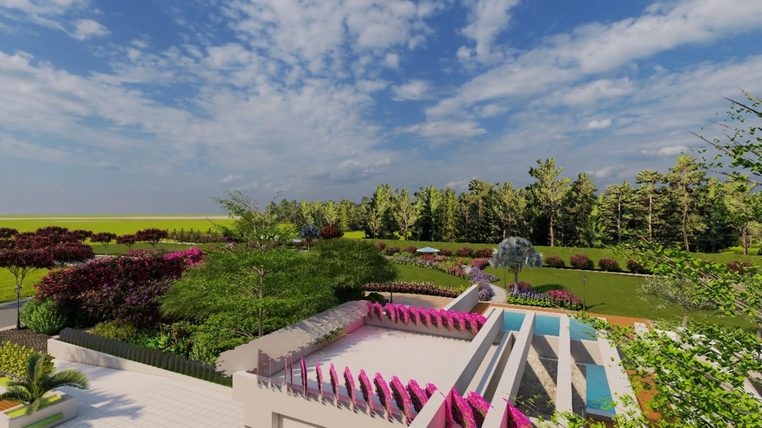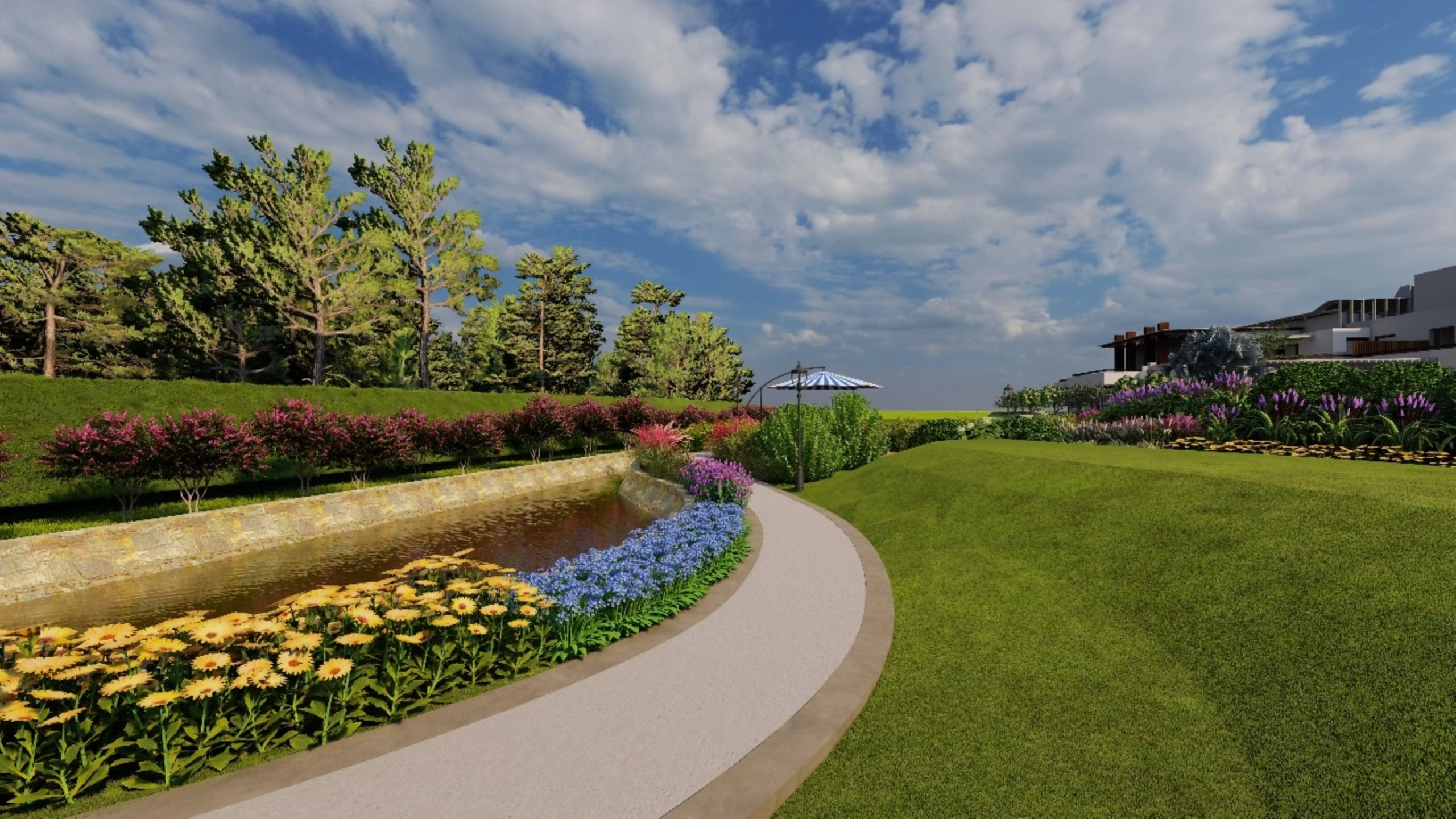 Located in Karachi, Lake Grand High-End Resort features a thoughtfully designed landscape that enhances the natural contours of the site. The entrance welcomes guests with a well-organized parking area framed by greenery. The contoured terrain is accentuated with layered plantation, incorporating a diverse mix of native and ornamental species for seasonal interest and visual depth. Comfortable sitting areas are strategically placed to offer scenic views and moments of relaxation, blending natural beauty with functional outdoor spaces to create a serene and luxurious resort experience.