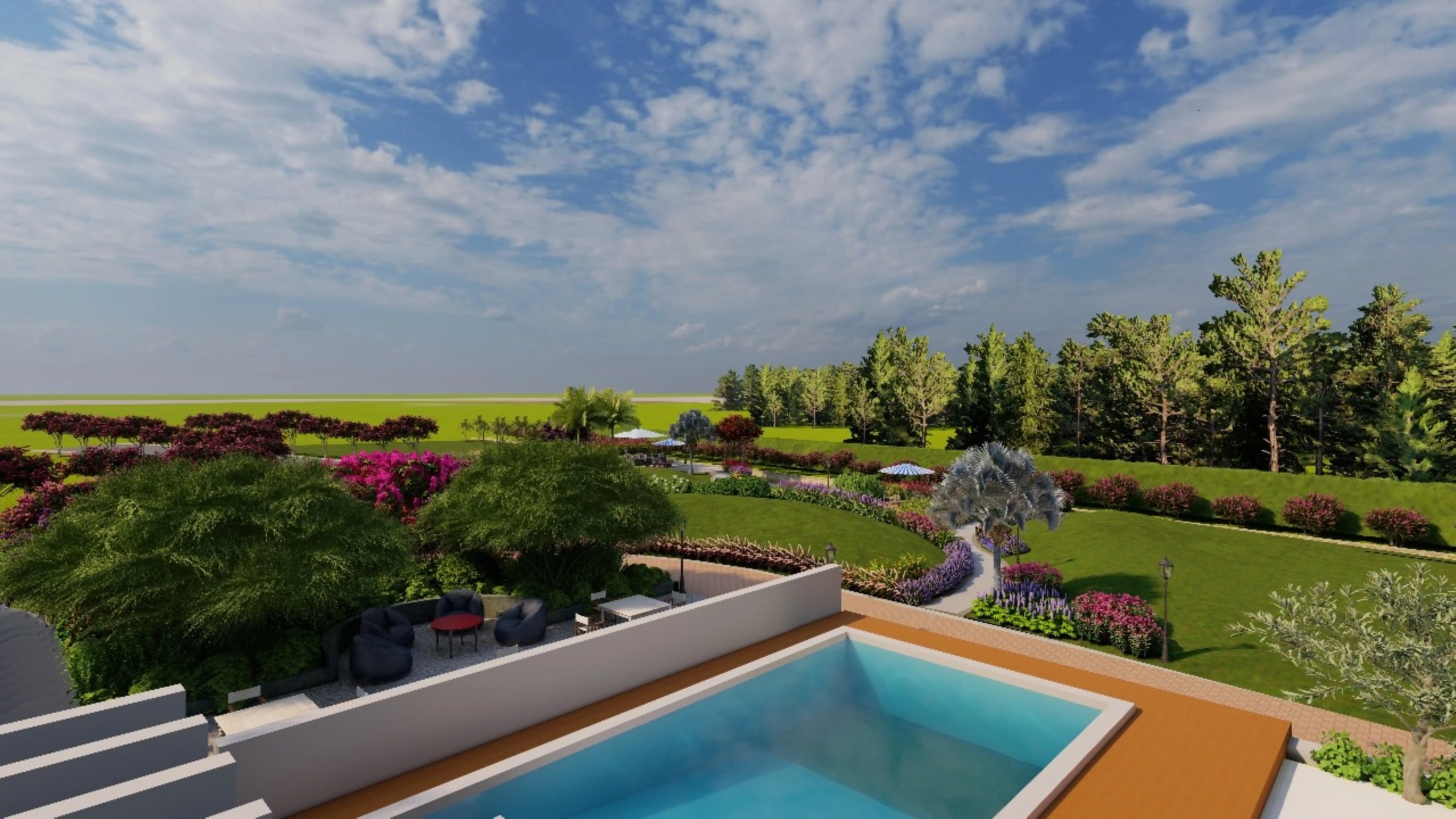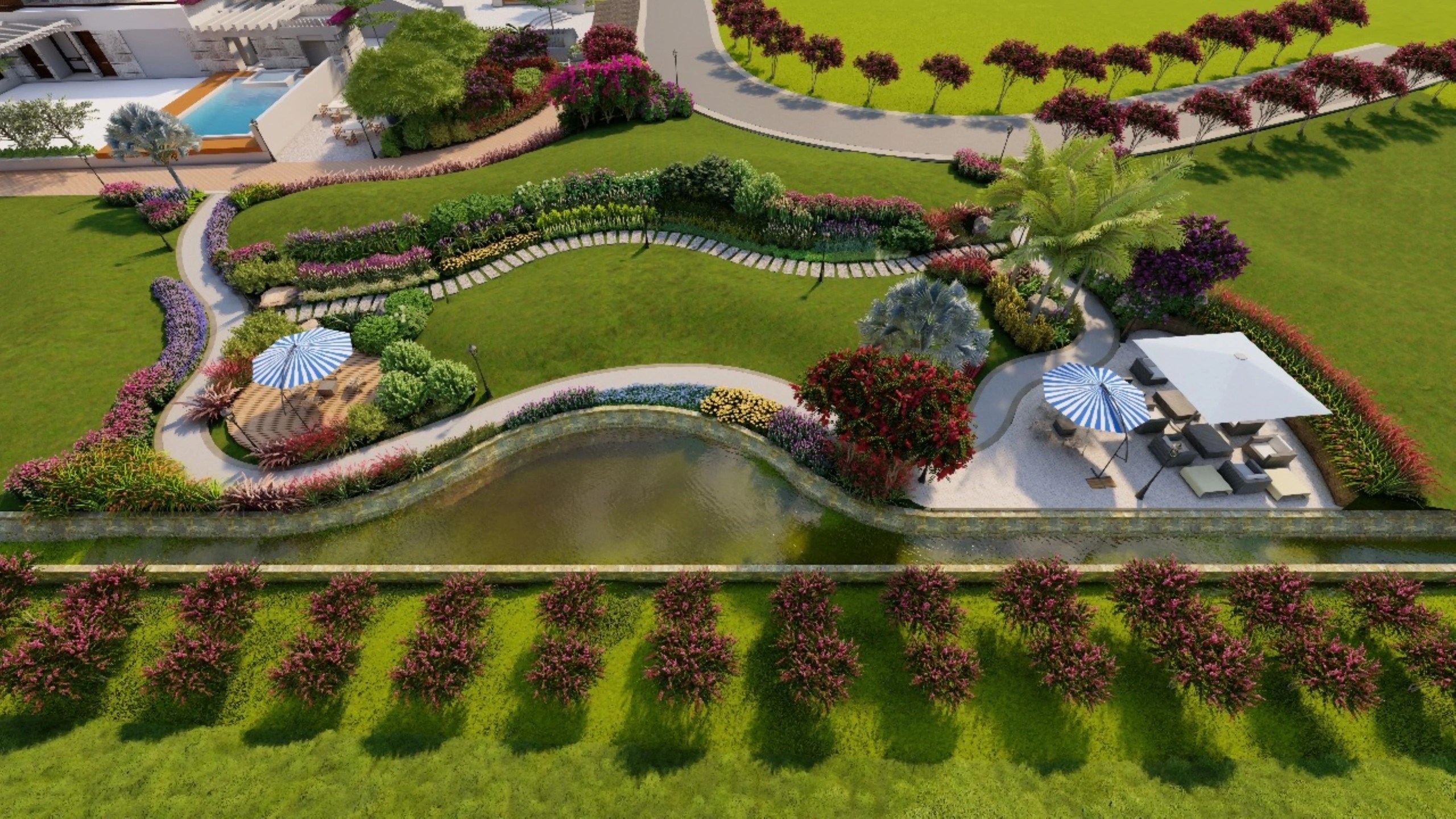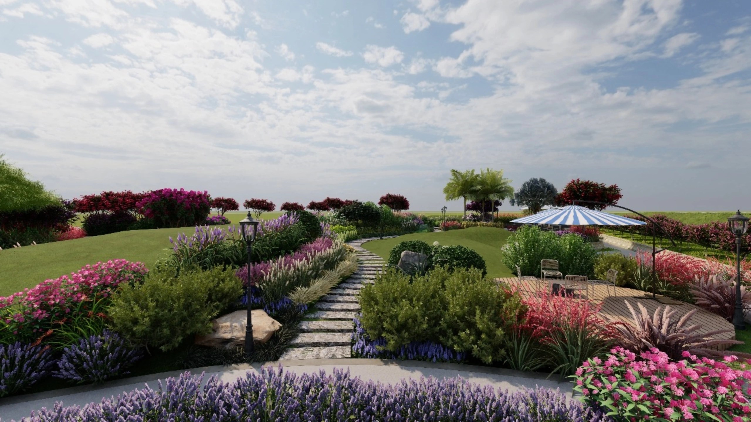 Located in Karachi, Lake Grand High-End Resort features a thoughtfully designed landscape that enhances the natural contours of the site. The entrance welcomes guests with a well-organized parking area framed by greenery. The contoured terrain is accentuated with layered plantation, incorporating a diverse mix of native and ornamental species for seasonal interest and visual depth. Comfortable sitting areas are strategically placed to offer scenic views and moments of relaxation, blending natural beauty with functional outdoor spaces to create a serene and luxurious resort experience.