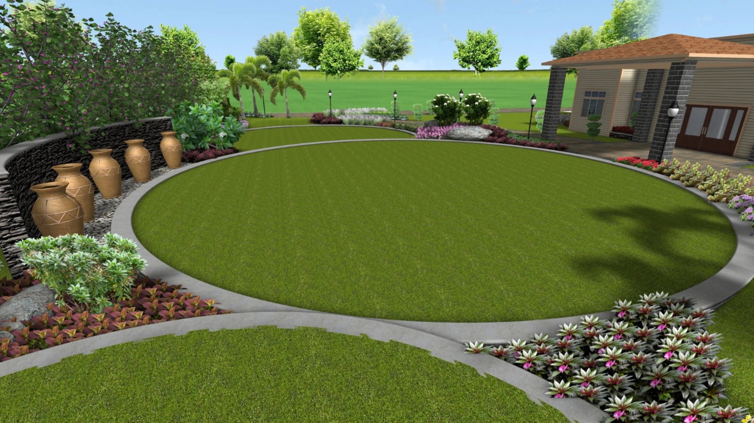This landscape project offers a refined outdoor setting, thoughtfully designed to enhance user experience through a variety of spatial and sensory elements. Key features include a gazebo and timber pergolas furnished with elegant outdoor seating, creating inviting spots for leisure and social interaction. A curated selection of diverse plant species adds texture and seasonal interest, while a centrally placed water feature serves as a calming visual anchor. The dedicated barbecue zone, complemented by custom-built seating, provides a functional and engaging space for outdoor dining. Strategic use of natural materials and landscape props ensures a harmonious blend of structure and greenery throughout the space.